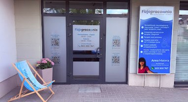 Fizjopracownia — oklejanie witryn folią szronioną z nadrukiem + wymiana lica kasetonu + logotyp na plexi ✨💡